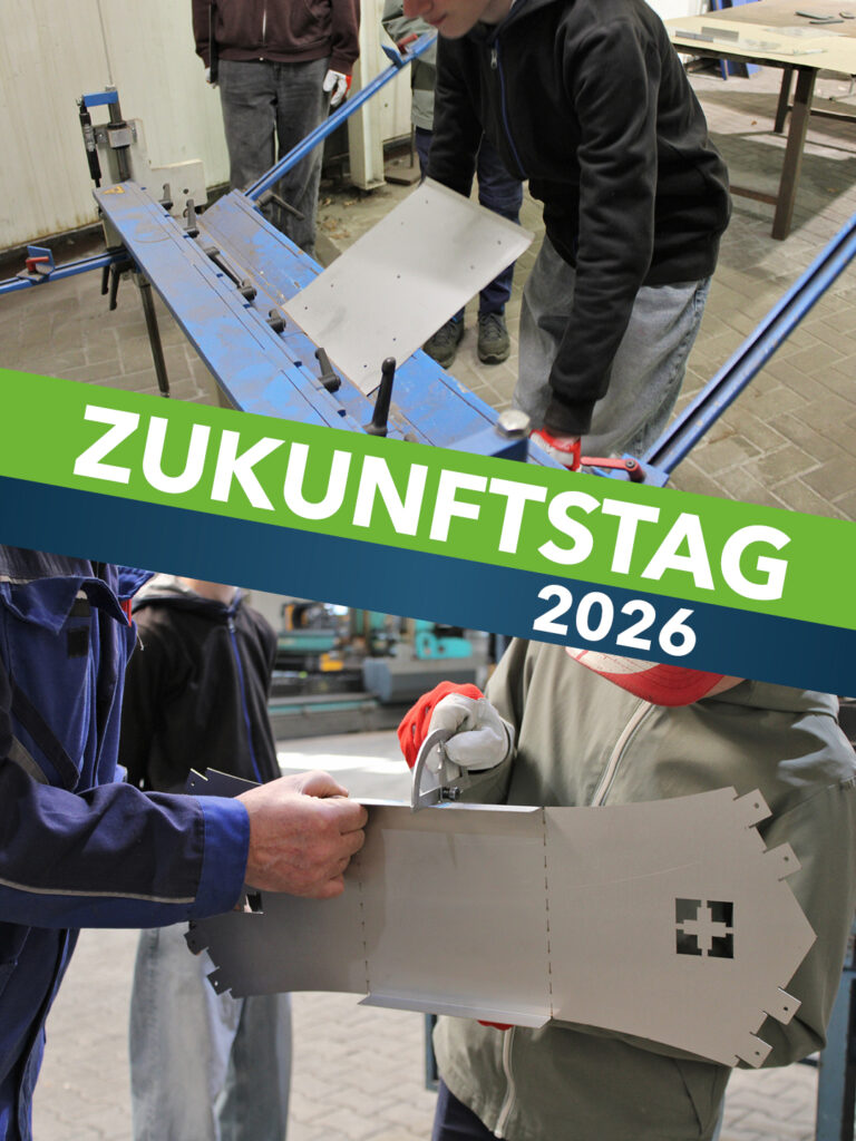 Zum diesjährigen Zukunftstag durften wir 4 junge Menschen in unseren Hallen begrüßen. Joseph Strohschnieder (der auch das GenerationenWerkstatt-Projekt betreut) hat mit den Schülern ein Projekt entworfen, das diese nach ihrer Zeit bei uns in den eigenen Garten stellen können; ein Vogelhäuschen. Herr Strohschnieder hat die einzelnen Arbeitsschritte begleitet, sodass die Schüler einen weitgreifenden Einblick in die Berufe im Metallverarbeitungsbereich bekamen.